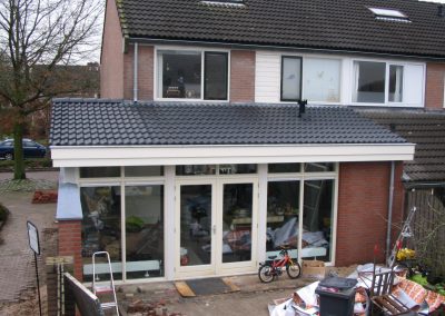 Complete verbouwing van de begane grond en het realiseren van een aanbouw aan de achterzijde. Het betreft hier een hout skeletbouw met een stenen gemetselde muur als buitenschil. Aan de achterzijde is de gehele achtergevel voorzien van openslaande tuindeuren en zijlichten.